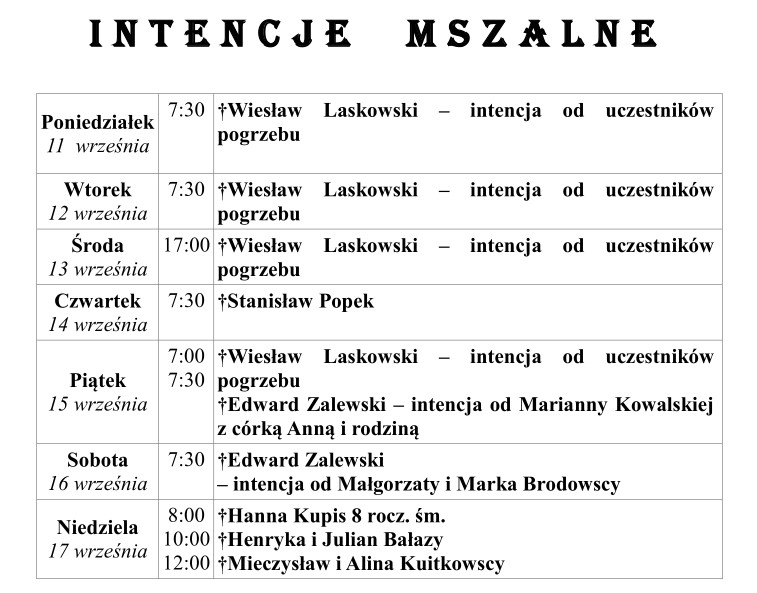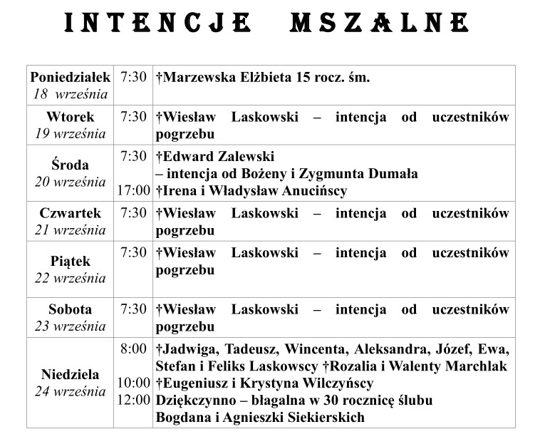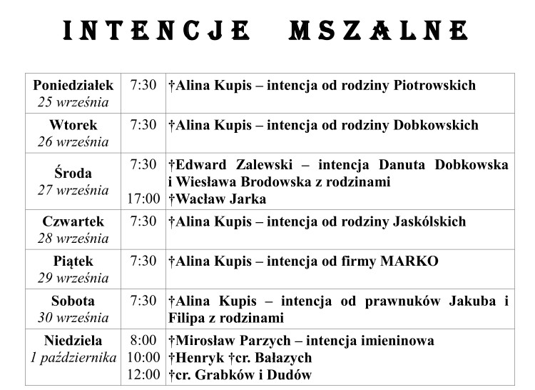 7. W następną niedzielę rozpoczynamy październik – miesiąc poświęcony NMP, Królowej Różańca Świętego. W dni powszednie nabożeństwo różańcowe będziemy odprawiać po Mszy św. o godz. 17.00. Zachęcamy do udziału w tym niezwykle ważnym i miłym Matce Najświętszej nabożeństwie. Oby w naszej parafii nie było domu, czy rodziny, w której nie rozbrzmiewałaby modlitwa różańcowa.