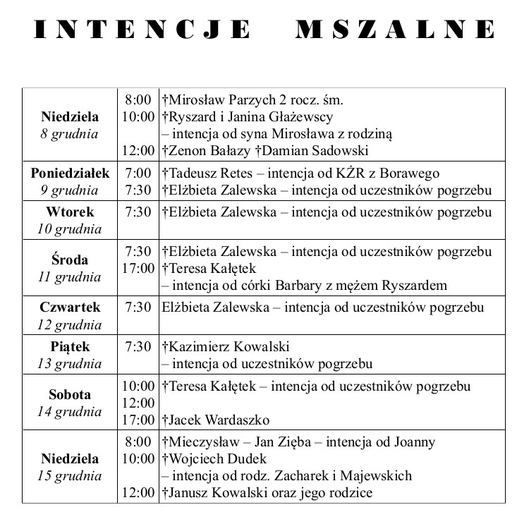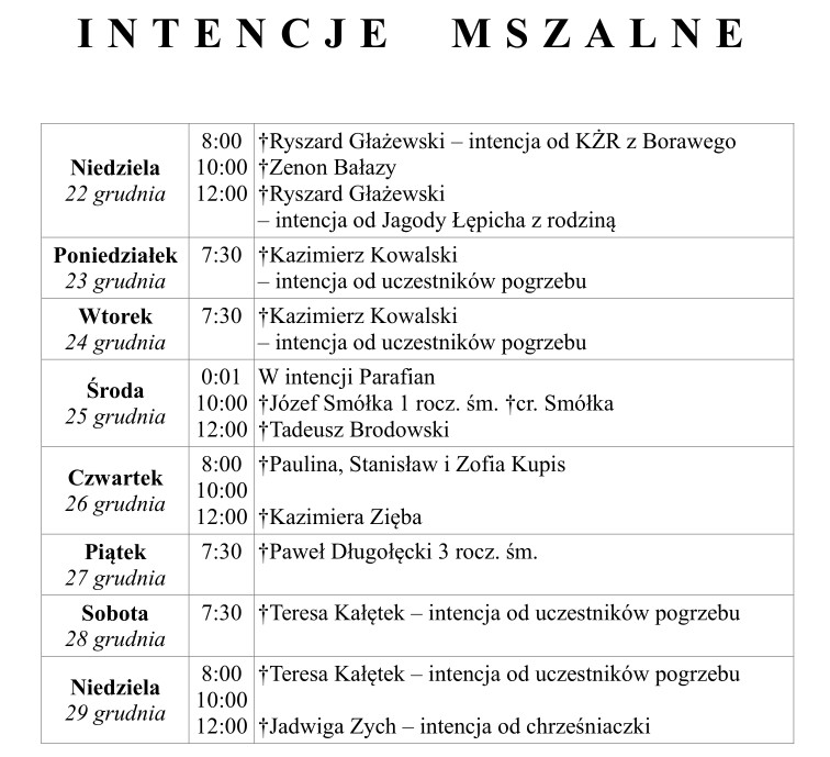 7. Parafianom i gościom, życzymy błogosławieństwa Bożego za wstawiennictwem Najświętszej Maryi Panny Królowej Polski. Wszystkim życzymy dobrego i błogosławionego Nowego Roku Pańskiego 2025.