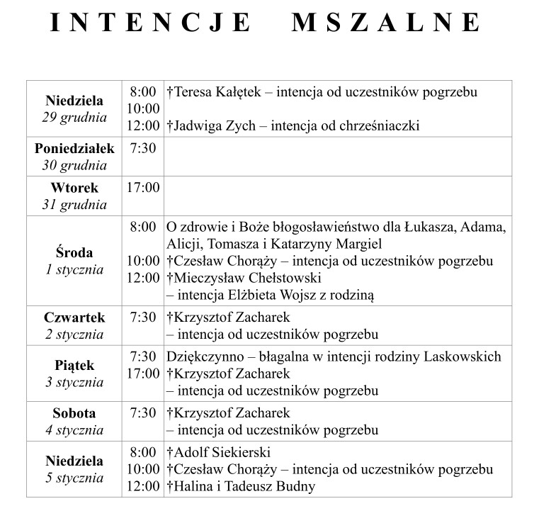 Ogłoszenia duszpasterskie 29 grudnia 2024