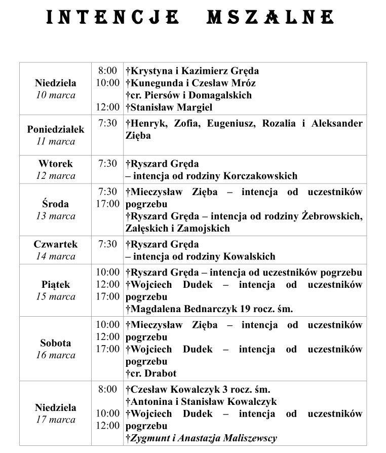 5. W środę po Mszy Świętej odprawianej o godz. 17:00 zapraszam na cotygodniowe nabożeństwo do Matki Bożej Nieustającej Pomocy.