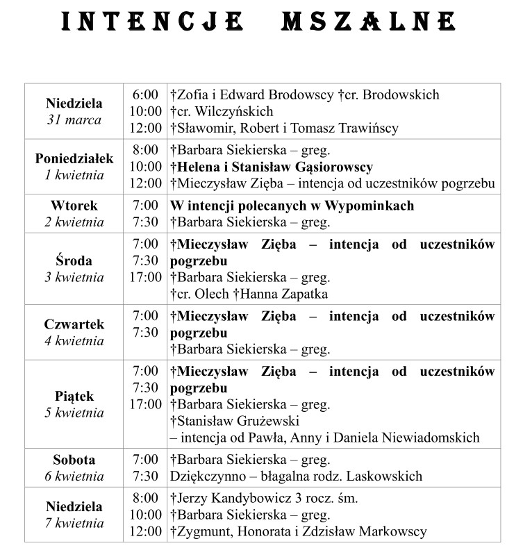 7. Przyszła niedziela rozpoczyna obchodzony w Kościele w Polsce Tydzień Miłosierdzia. Serdecznie zachęcamy do włączenia się w akcje organizowane przez Caritas naszej diecezji. Z racji Tygodnia Miłosierdzia ofiary do puszki na Caritas.