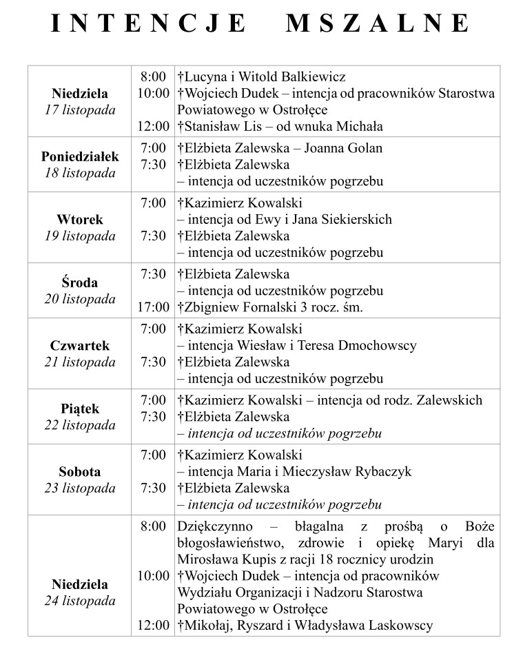 3. Ofiary składane na tacę przeznaczone są na WSD w Łomży. Za tydzień ofiary do puszki na pomoc „Kościołowi na Wschodzie”.