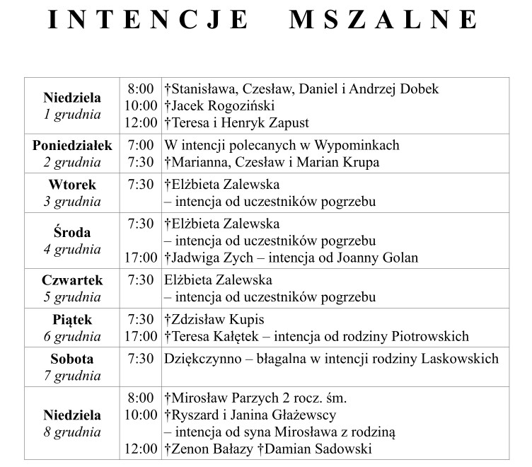 Ogłoszenia duszpasterskie 1 grudnia 2024