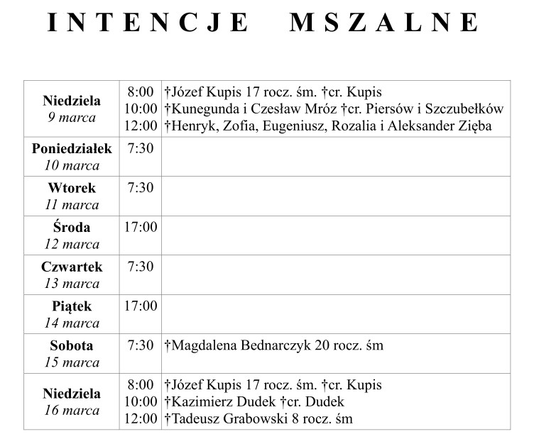 Ogłoszenia duszpasterskie 9 marca 2025