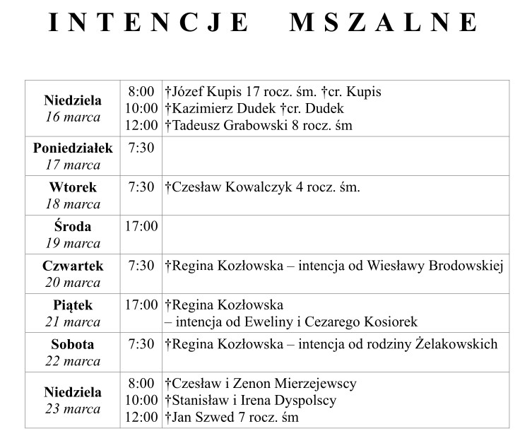 Ogłoszenia duszpasterskie 16 marca 2025