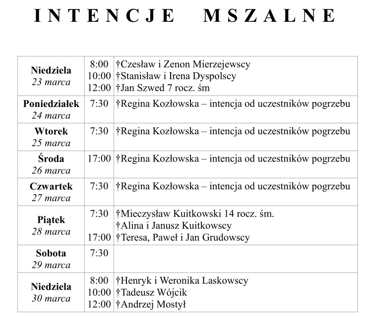 Ogłoszenia duszpasterskie 23 marca 2025