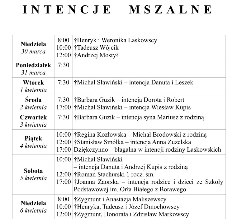 Ogłoszenia duszpasterskie 30 marca 2025