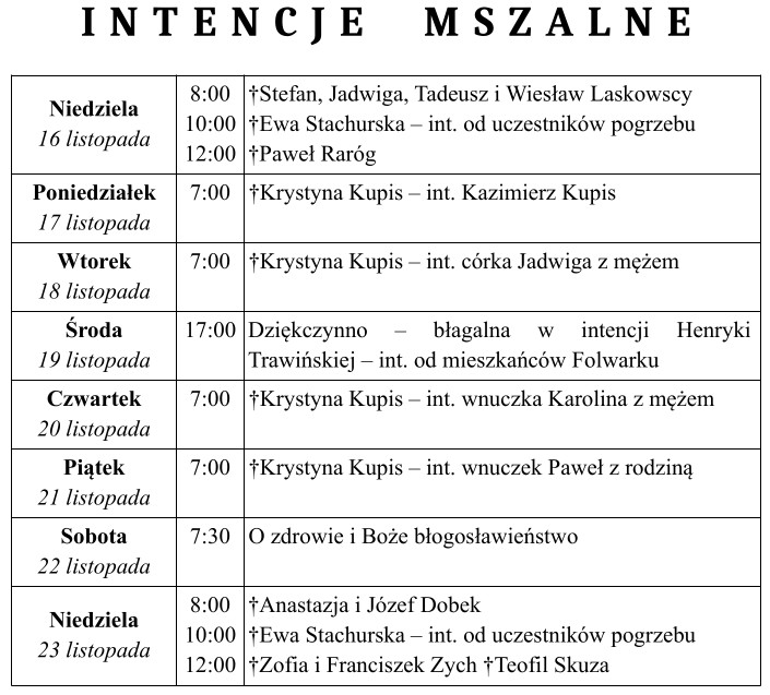 Ogłoszenia duszpasterskie 30 listopada 2025