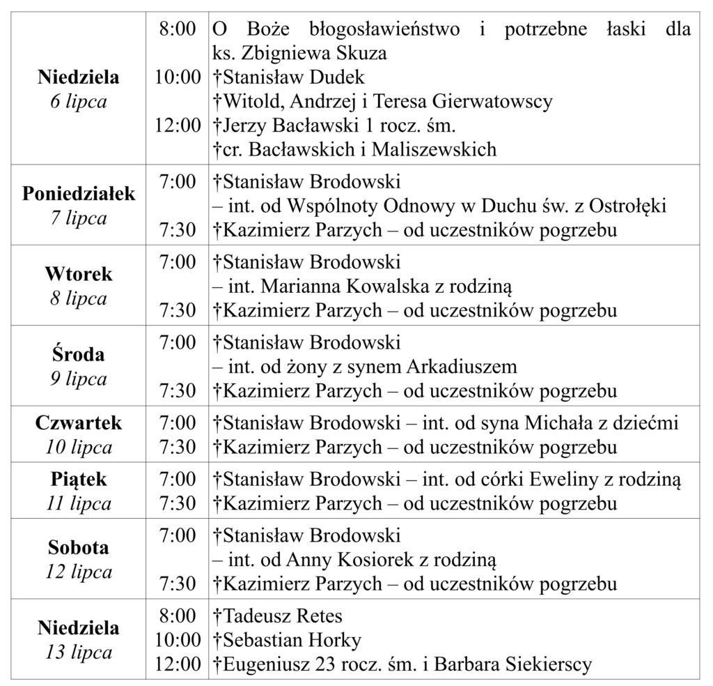3. W wakacyjne miesiące (lipiec, sierpień) w dni powszednie Msze św. będą odprawiane o godz. 7.00 rano.