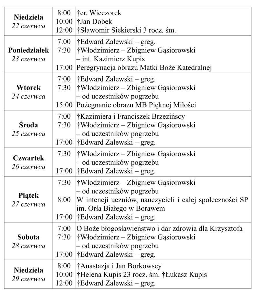 Ogłoszenia duszpasterskie 22 czerwca 2025