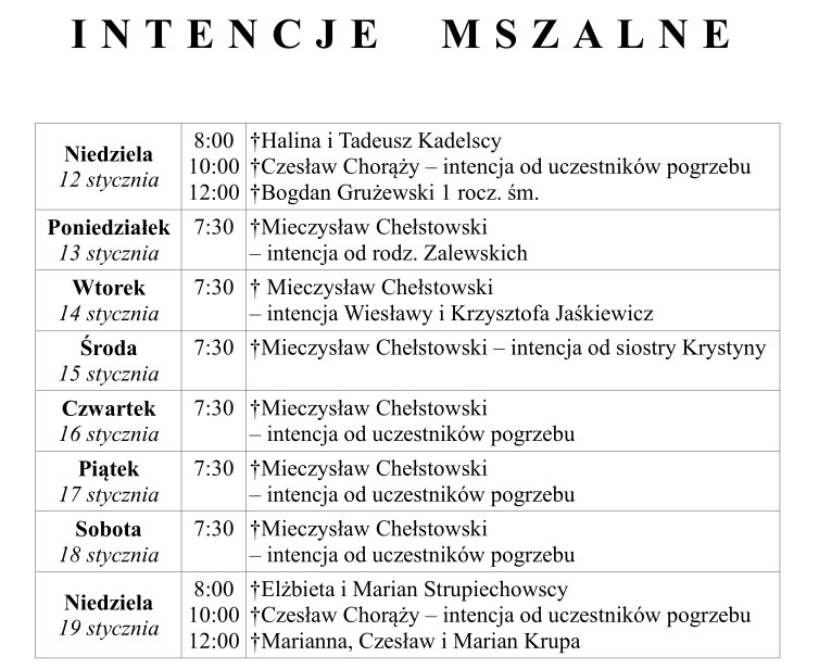 Ogłoszenia duszpasterskie 12 stycznia 2025