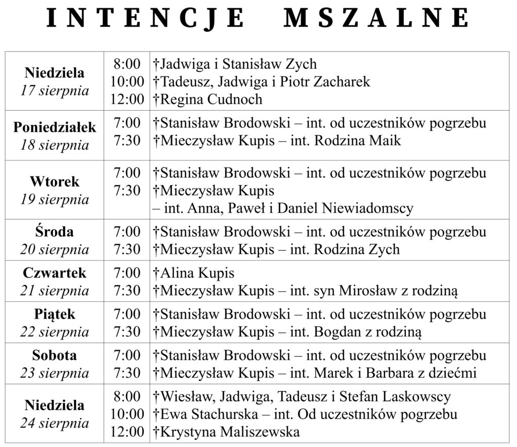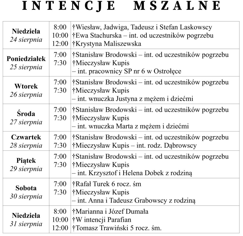Ogłoszenia duszpasterskie 24 sierpnia 2025