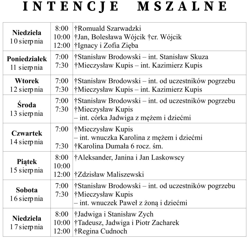 Ogłoszenia duszpasterskie 10 sierpnia 2025